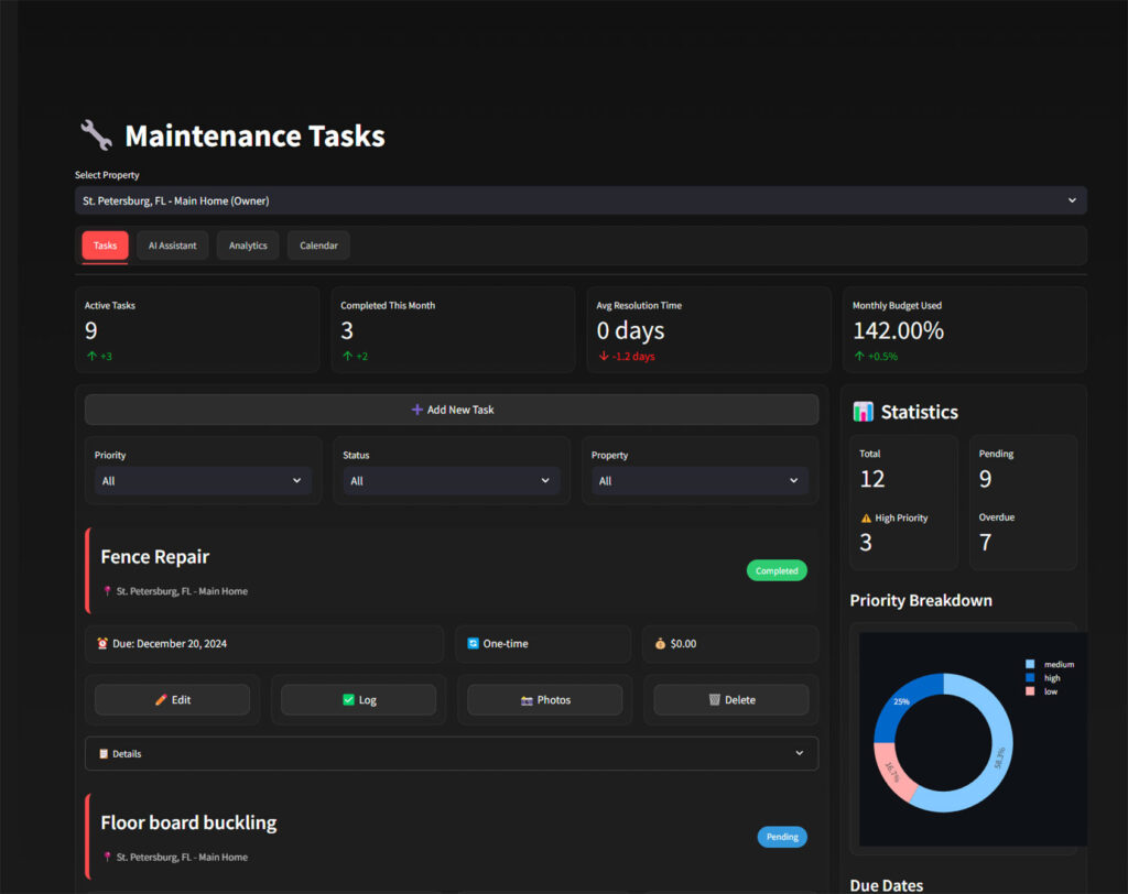The foundation of HomeCue lies in its deep understanding of how people interact with their living spaces. We’ve worked extensively with property owners, tenants, and homeowners to create a platform that adapts to individual needs while maintaining powerful property management capabilities. Our advanced AI assistant analyzes patterns in maintenance requirements, inventory management, and property performance, providing proactive recommendations that help users stay ahead of potential issues and optimize their property management strategies.
